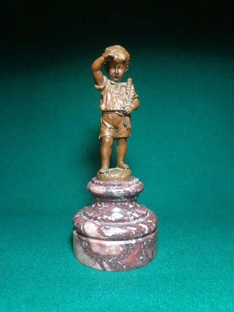 Мальчик с колосьями пшеницы. Конец XIX века. Европа. Бронза, литье, чеканка. Высота - 17 см. (Высота фигурки без основания - 11 см.). Хорошее состояние. Лот находится в открытой продаже и может быть снят с торгов в любой момент. https://xn--80agoiniomc.xn--p1ai/?ysclid=mnadax3xqh431980562 #винтаж #коллекционное #статуэтка #фигурки #литьё #19век #оригинал #коллекционирование #статуэткиизбронзы #Бронзовая #скульптура #интерьерныепредметы #Интерьерныевещи #Франция #подарок #клеймо #Европа #ручнаяработа #редкость #красота #редкая #оригинальныйподарок #золото #литье #ретро #англия