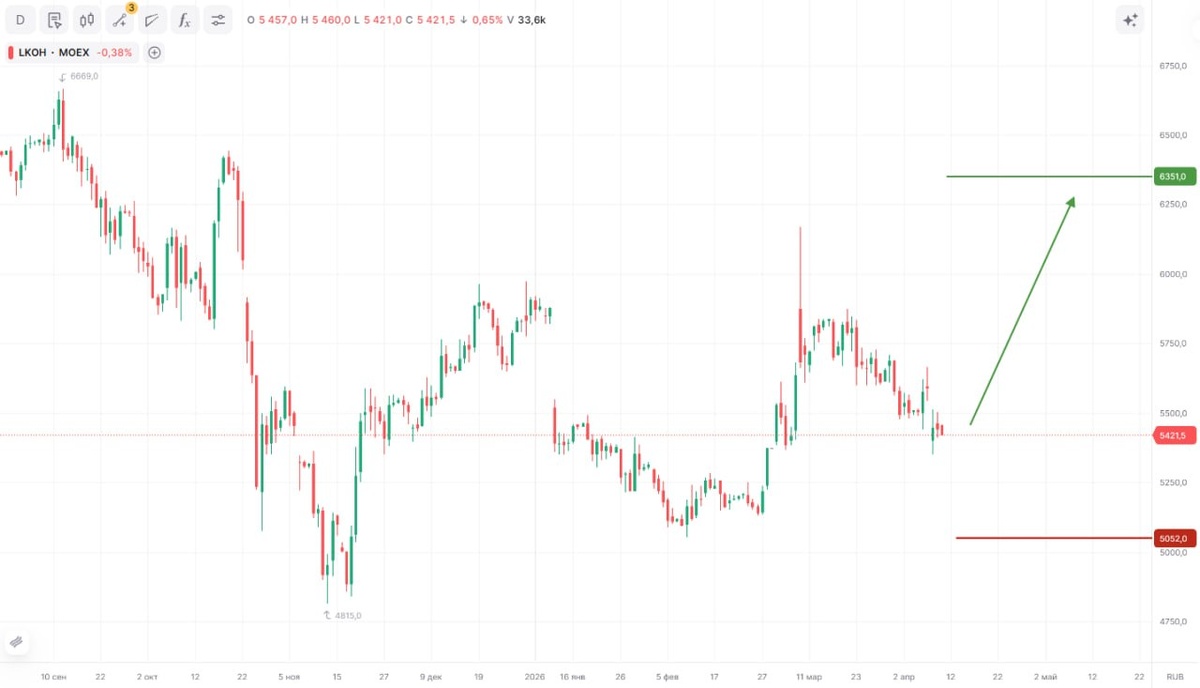 » Тикер: #LKOH Идея: Long ⬅️ Срок идеи: 1 месяц Цель: 6371,00 руб. Потенциал идеи: 17,23% Объем входа: 6% Стоп-приказ: 5045,00 руб. 🧳 Технический анализ Акции подошли к зеркальному уровню поддержки, формируя ретест слома тренда. Удержание текущей зоны создает предпосылки для потенциального разворота и возобновления движения вверх. При объеме позиции в 6% и выставлении стоп-заявки на уровне 5045,00 руб., риск на портфель составит 0,43%. Соотношение прибыль/риск составляет 2,40. 🏠 Фундаментальный фактор #Лукойл — крупнейшая частная нефтяная компания России, занимающаяся добычей, переработкой и сбытом нефти и нефтепродуктов на глобальном рынке. Высокие мировые цены на нефть поддерживают рублевую выручку и прибыль, а щедрая дивидендная политика с выплатой значительной доли свободного денежного потока усиливает интерес инвесторов. Приближение дивидендного сезона и статус одного из самых доходных эмитентов российского рынка создают основу для переоценки акций вверх. 🤖 AI-скринер Провер