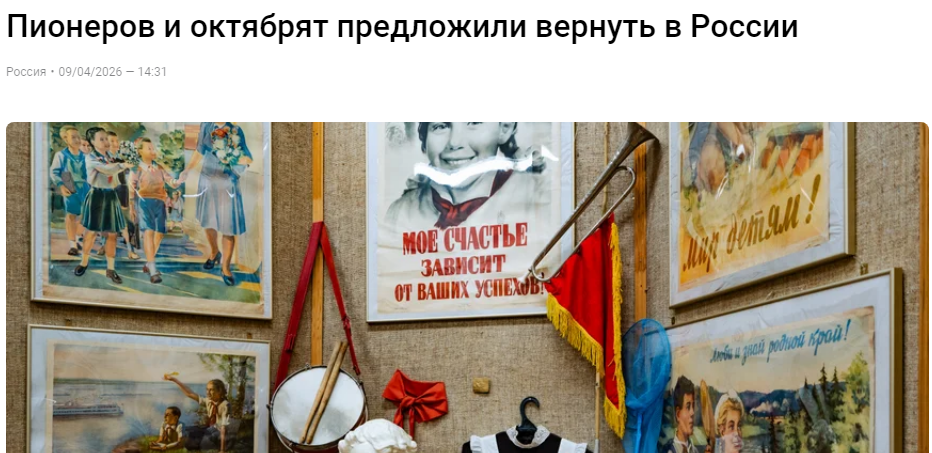 - молодёжные организации уже есть. Это и "Движение первых", и "Молодая гвардия", и "Наши"... много кто. Появление очередного движения на этом фоне будет способствовать только разделению общества, а не сплочению. - и октябрята, и пионеры, и комсомольцы продвигали коммунистическую идеологию и соответствующий образ жизни. У нас в стране идеология отсутствует по Конституции. Да, у нас продвигается патриотизм и "народное единство". Но по факту это буржуазный патриотизм и "единство" эксплуататоров и эксплуатируемых. - даже если возрождением займётся КПРФ, то толку от этого не будет, так как, судя по лозунгам, Геннадий Андреевич Зюганов со товарищи является идеологическим потомком отнюдь не Владимира Ильича Ленина. Его идеал - Плеханов Георгий Валентинович, фракцию меньшевиков которого Ленин называл не иначе, как "соглашенцы"
