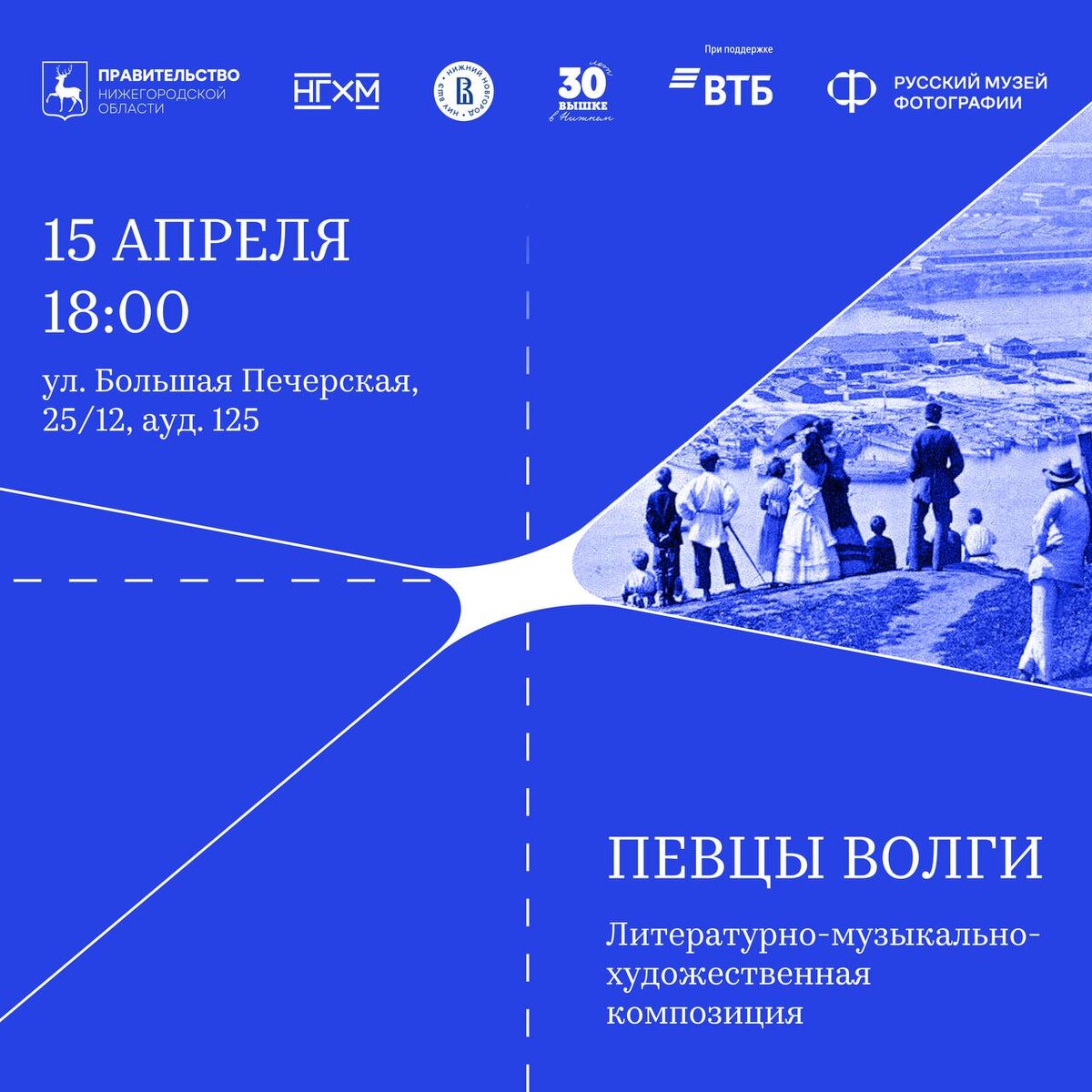 ☀️ Просветительский проект «Культурная среда» приглашает на литературно-музыкально-художественную композицию «Певцы Волги» в рамках параллельной программы выставки «Слияния». Гостей ждет синтез искусств, где слово, светопись и музыка сольются в едином повествовании о великой русской реке. В программе: ⭕️ Разговор о Евгении Чирикове – писателе, чьё имя неразрывно связано с Волгой. Профессор Валерий Зусман и правнук писателя Михаил Чириков расскажут о творчестве мастера и представят музей Евгения Чирикова при нижегородском кампусе НИУ ВШЭ. ⭕️ Выставка «Певцы Волги» – работы нижегородских светописцев из фондов Русского музея фотографии. О коллекции расскажет директор музея Ксения Федосеева-Царицынская. ⭕️ Музыкальные интерлюдии – песни о Волге в исполнении вокалистов Нижегородской государственной консерватории им. М.И. Глинки (класс профессора Натальи Зусман). ул. Большая Печёрская, 25/12, ауд. 125 15 апреля, 18:00 По предварительной регистрации вход свободный.