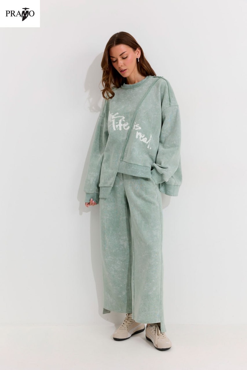 Модель, которая в последнее время стала почти обязательной частью гардероба. Костюм из трикотажного флиса в спортивном стиле. Мы, конечно по простому не можем, поэтому немного занялись украшательством. Во первых, оптимистичный принт. Во - вторых, фантазийная асимметрия. В третьих, отделка сутажным кантом. ⏬И даже на брюках удлиненный лампас! Свобода выражения, комфорт и самодостаточность. Ткань. Потрясающий по ощущениям мягкий уютный , "домашний" флис. Замечательное изобретение для стиля casual. Напоминаю, что это весна и лето, поэтому здесь только хлопок! Шерсти не ждите! 🟢Полный разгул асимметричного кроя, фиксированного по низу трикотажными резинками. Интригу добавляет принт и "драные" канты из сутажа. 🟢Брюки то же немного "рваные" с отвисающими хлястиками по низу. В общем, хиппуйте с комфортом🙂