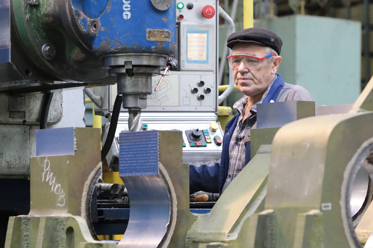 «Станочнику много чего надо уметь: внимательно работать с чертежами, знать техпроцесс, размеры детали не перепутать… Навыки приходят со временем, было бы желание и терпение, чтобы научиться», – так говорит о своей работе Владимир Диер, токарь-расточник механического цеха 4 предприятия ОСК Севмаш. В субботу, 4 апреля, Владимир Эдуардович отметил 70-летний юбилей. – Владимир Диер – один из опытнейших наших рабочих, он любое задание выполнит, – отмечает Иван Шиян, начальник БОТиЗ цеха 4. – Да и стаж у него говорит сам за себя, и опыт работы на большом оборудовании огромный. – Хотел устроиться электриком на Севмаш (до армии училище окончил), но меня не взяли, сказали, можешь станочником пойти. Вот до сих пор и работаю на одном и том же станке, 49 лет уже, – рассказывает Владимир Эдуардович. Токарно-расточной станок у него действительно большой. А на маленьких, говорит, и не работал. Сначала десять месяцев учился, затем подручным был. А потом в цехе организовали комсомольско-молодёжные бриг