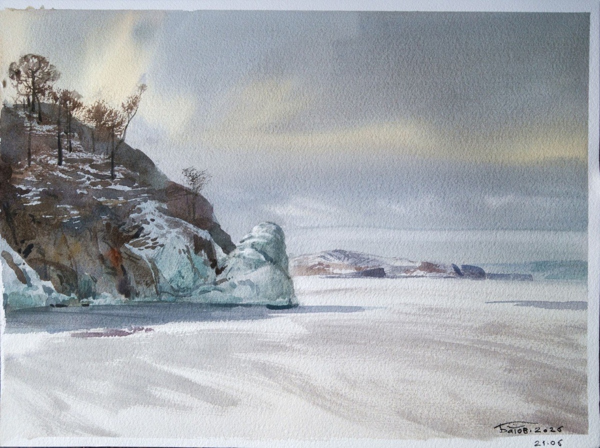 20260321 Ледяной утёс. Байкал / Ice Rock. Baikal / 27,5x37 / Watercolor Plein air painting