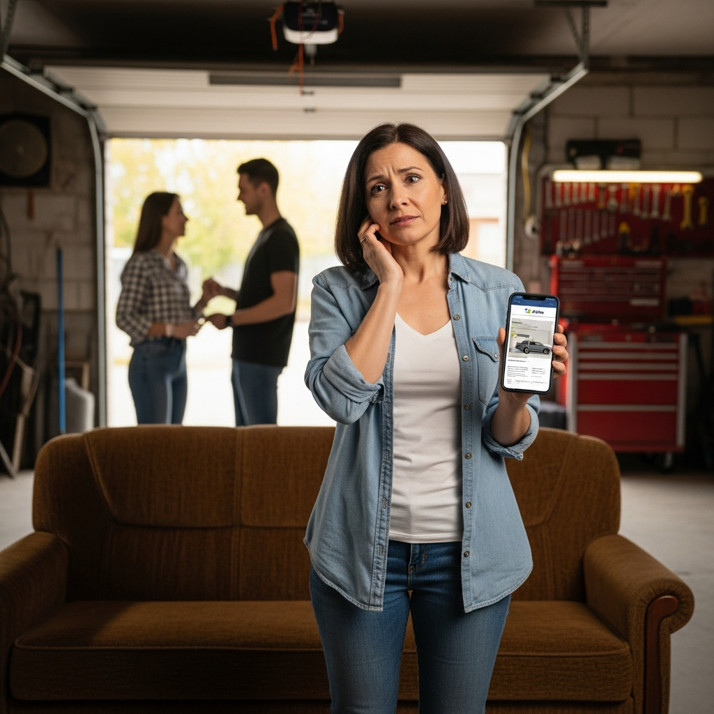 Сфотографировала диван (прямо в гараже, даже не стала протирать), написала объявление: «Продам диван, раскладной, б/у, в хорошем состоянии. Цена 3000 рублей. Самовывоз». Указала свой номер телефона и выложила.