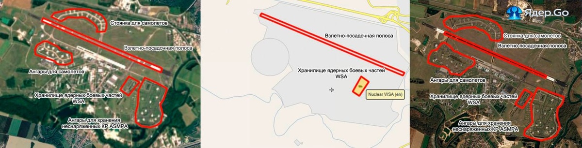 В свете заявлений Франции о своём «ядерном зонтике» и расширении ядерного арсенала появилась идея просмотреть все места хранения и эксплуатации ядерного вооружения. Всё ядерное вооружение Французской республики делится на два типа: предназначенное для размещения на морских носителях и на воздушных носителях. При рассмотрении мест базирования также будем следовать этой логике: начнём с воздушной компоненты (которую президент Макрон в рамках своего «ядерного зонтика» предлагает союзникам), а закончим морской. ▪️113-я авиабаза ВКС Франции «Комендант Антуан де Сент-Экзюпери» Расположена в коммуне Сен-Дизье-Робинсон. Здесь находятся хранилища ракет ASMPA (воздушные ракеты средней дальности) и соответствующих боевых частей. Французские военные попытались скрыть эту авиабазу от посторонних глаз на Google Картах и Google Earth, заменив актуальный фрагмент снимком 1985 года. Однако попытка оказалась тщетной. На сайте Wikimapia.org указан комплекс сооружений, где хранятся боеприпасы, а на отеч