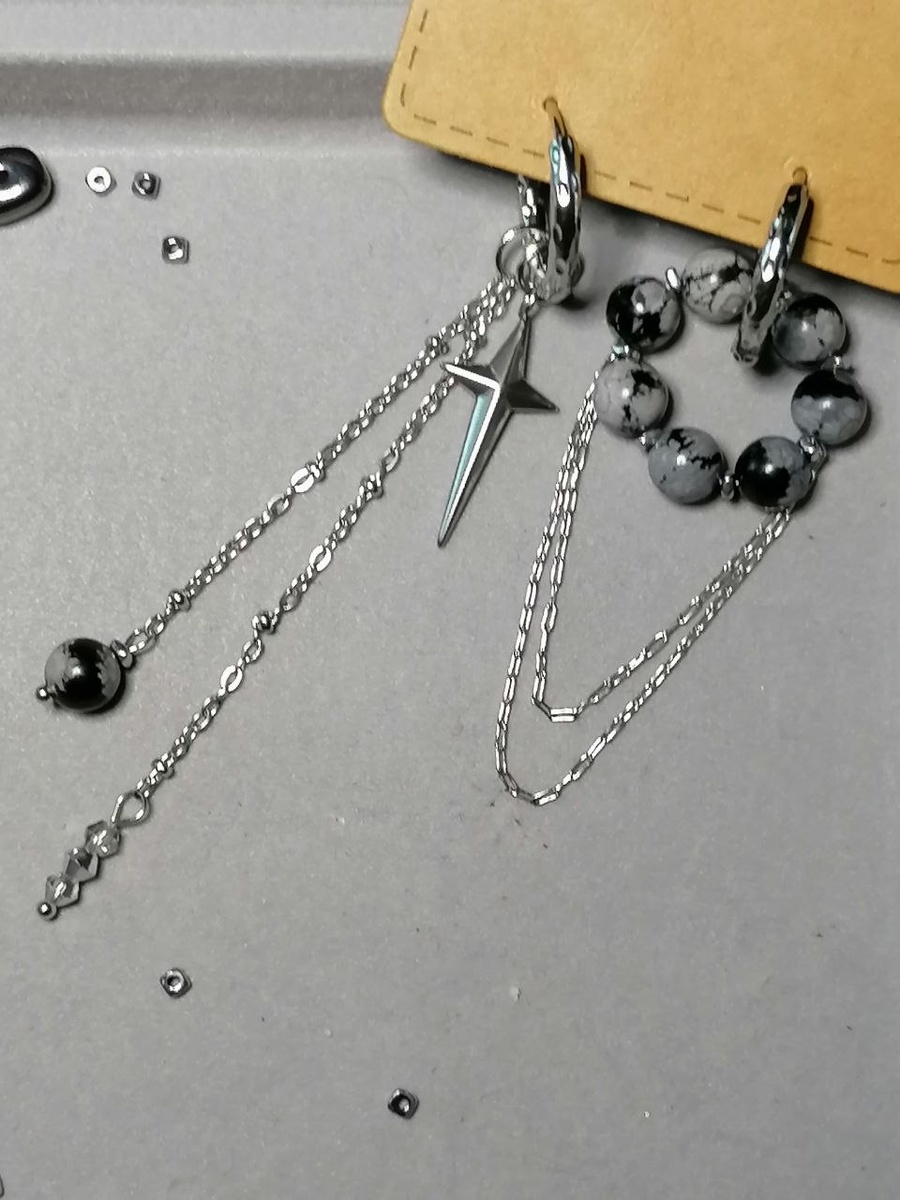 Асимметричные серьги со снежным обсидианом — тренд этого сезона