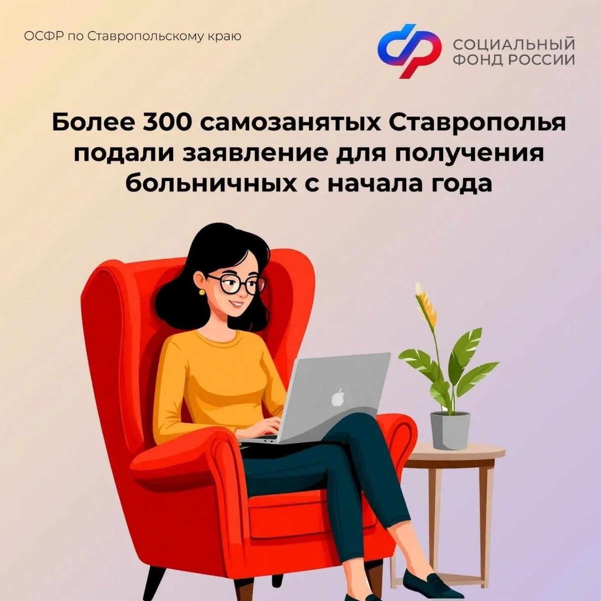 нетрудоспособности. Это позволит работающим на себя гражданам получать выплаты по больничным листкам. 🧑💻Для этого необходимо зарегистрироваться в Отделении СФР по Ставропольскому краю и платить ежемесячные взносы. 📝Заявление о вступлении в программу можно подать: - на портале госуслуг, - в приложении «Мой налог», - в клиентских службах Отделения СФР. 💳Чтобы принять участие в программе, самозанятому необходимо определиться со страховой суммой, от которой будут зависеть больничные выплаты. ✅Это может быть 35 тыс. или 50 тыс. рублей. Большая сумма повышает и выплаты при наступлении болезни. ❓Как и сколько платить? 💳Взносы можно платить ежемесячно или разово за весь год. ✅Тариф взносов составляет 3,84% от выбранной суммы годового пособия. 📲В месяц нужно перечислить 1 344 или 1 920 рублей (3,84% от 35 тыс. или 50 тыс. рублей). При уплате раз в год - 16 128 или 23 040 рублей (сумма ежемесячных платежей за 12 месяцев). ❗️Самозанятый сможет получить выплаты по больничному