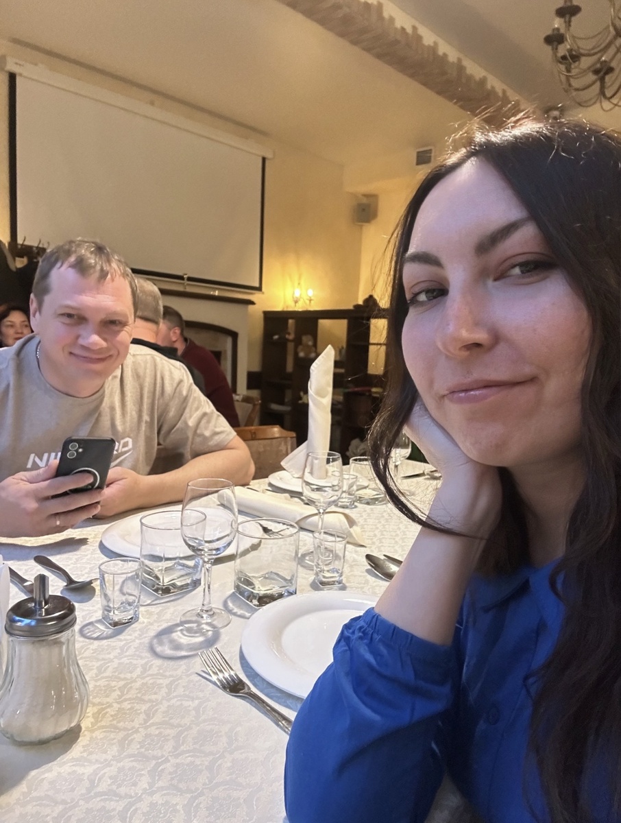 Ждём. Скучаем. Хотим есть. Время идёт. Фотографируемся, осматриваем зал. Я даже под стол залезла с камерой — мы спорили, старинная там батарея или современная.