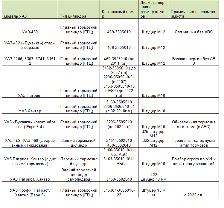 Совместимость и выбор деталей: какие цилиндры тормоза подходят под модификации УАЗ