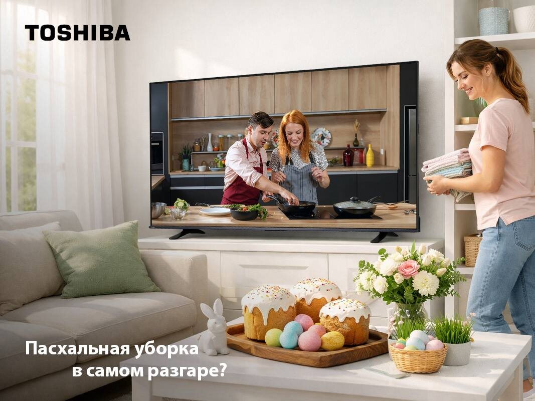 🙏 Эта традиция уходит корнями глубоко в историю: чистый дом символизирует начало нового жизненного цикла, гармонию и готовность к добрым переменам. Но кто сказал, что предпраздничные хлопоты не могут быть уютными? Пока вы протираете полки, раскладываете украшения или печете кулич — телевизоры Toshiba создают атмосферу, в которой любая работа проходит легче. Благодаря технологиям изображение остаётся непревзойдённым и днём при солнечном свете, и вечером при мягком освещении кухни или гостиной. 💡Лайфхаки, которые разнообразят рутину: — Включите кулинарное шоу с яркой картинкой, оно вдохновит придумать что-то новое для праздничного стола. — Задайте настроение уборке: фоновая музыка или интересная аудиокнига поможет делать всё с удовольствием. — Используйте телевизор как визуальный таймер. Включите короткий эпизод или ролик и убираетесь, пока идёт видео. — Переключитесь на релакс-видео, Toshiba TV передаёт цвета настолько чисто, что даже двухминутный перерыв ощущается как отдых. Пуск