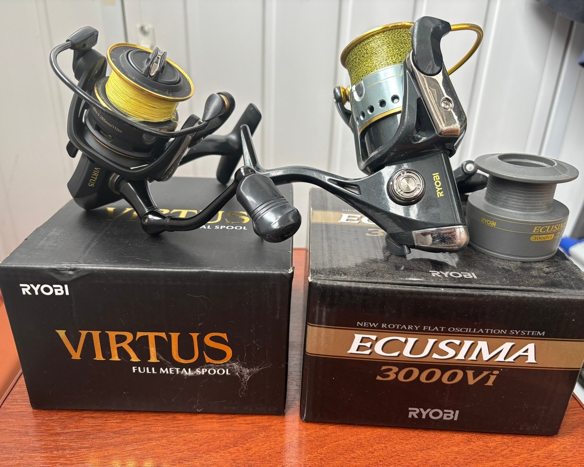 Надежные катушки Ryobi ecusima 3000 и virtus 2000 в рыбалке один сезон.Цена 2900 за обе, коробка с доками+ на ecusima хорошая плетня 1 or