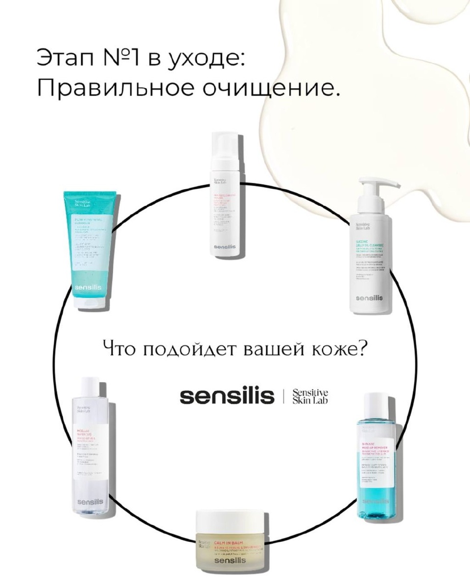 Без него невозможна здоровая кожа и работа последующего ухода. Какое средство от Sensilis подойдет именно вашей коже? Для сухой и чувствительной кожи: Если нужно максимально бережное воздействие, выбирайте воздушный мусс Gentle Cleansing Mousse или тающий бальзам для глубокого питания и комфорта кожи Calm in Balm Для чистоты пор и борьбы с блеском: Жирной и комбинированной коже идеально подойдет гель Purify Essential Cleanser. А для тех, кто ищет эффект обновления и сияния, — масло-гель Succinic Jelly Oil Cleanser Для деликатного демакияжа: Если вы носите стойкий макияж, используйте двухфазное средство Bi-Phasic Make-up Remover. А при склонности к покраснениям и куперозу выбирайте успокаивающую мицеллярную воду Micellar Water AR
