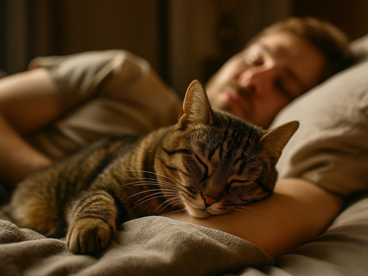 Получается, что кошка — ваш личный ночной доктор. Она ложится рядом, начинает мурлыкать, и вы оба расслабляетесь. Её сердцебиение замедляется, ваше — тоже. Научно доказано: владельцы кошек в среднем имеют более низкое артериальное давление и реже страдают от депрессии. Так что пушистый «оккупант» кровати на самом деле заботится о вашем здоровье. Ну как тут откажешь?