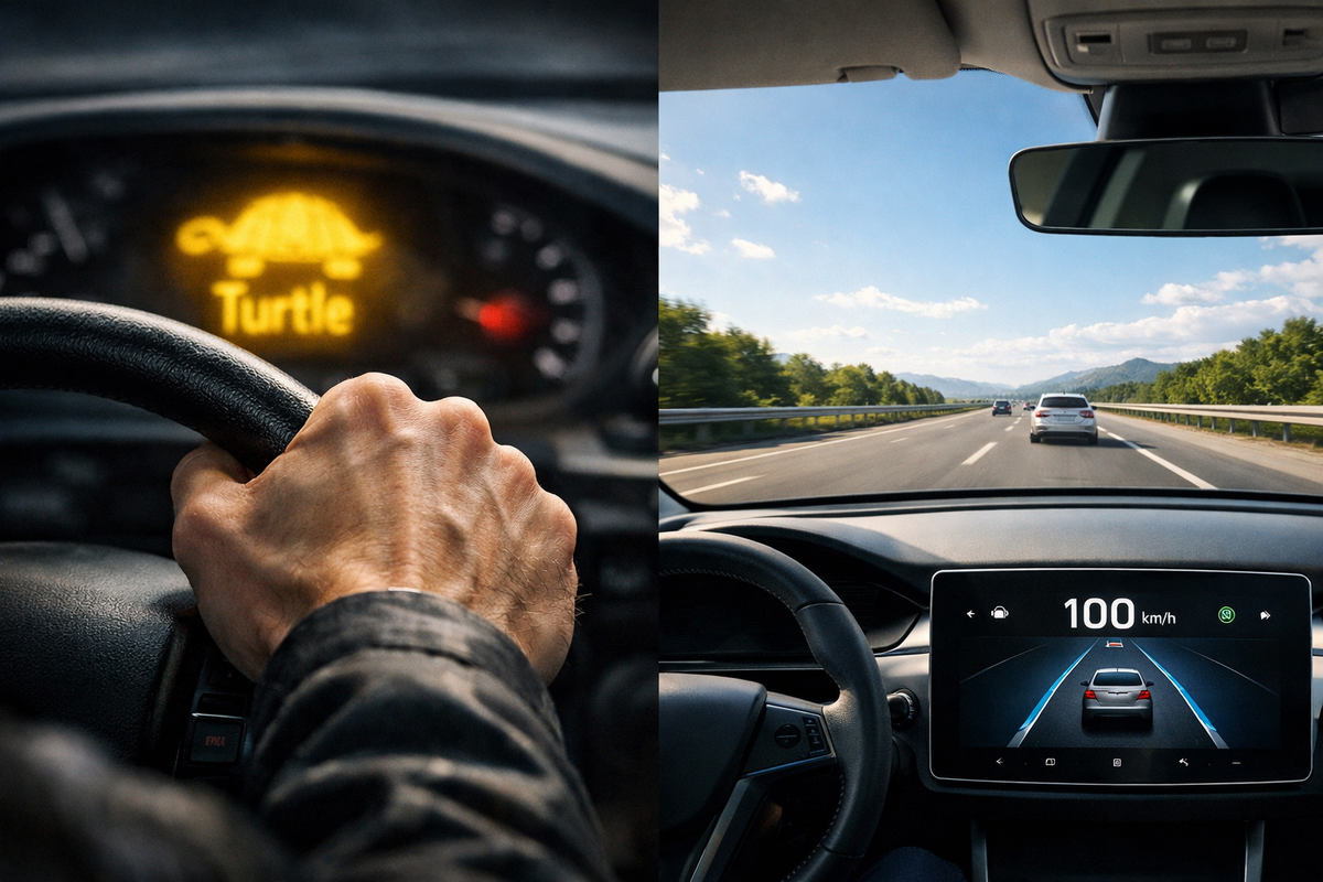 «Черепаха» (Turtle Mode) — это аварийный режим электромобиля, при котором:
