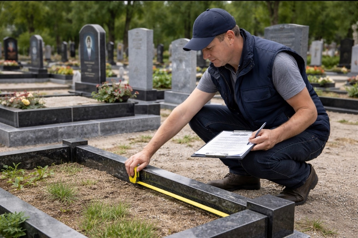 Выезд замерщика на место захоронения: точность, от которой зависит результат. При установке памятника и благоустройстве места захоронения особое значение имеет точность замеров. Даже незначительные ошибки могут привести к сложностям при монтаже или необходимости доработок. Именно поэтому услуга выезда замерщика является важным этапом в процессе изготовления памятников. Зачем нужен выезд замерщика. Каждое место захоронения имеет свои особенности: размеры участка, тип грунта, расположение соседних захоронений, уклон поверхности. Все эти нюансы невозможно учесть без личного присутствия специалиста. Выезд замерщика позволяет: — точно определить размеры участка