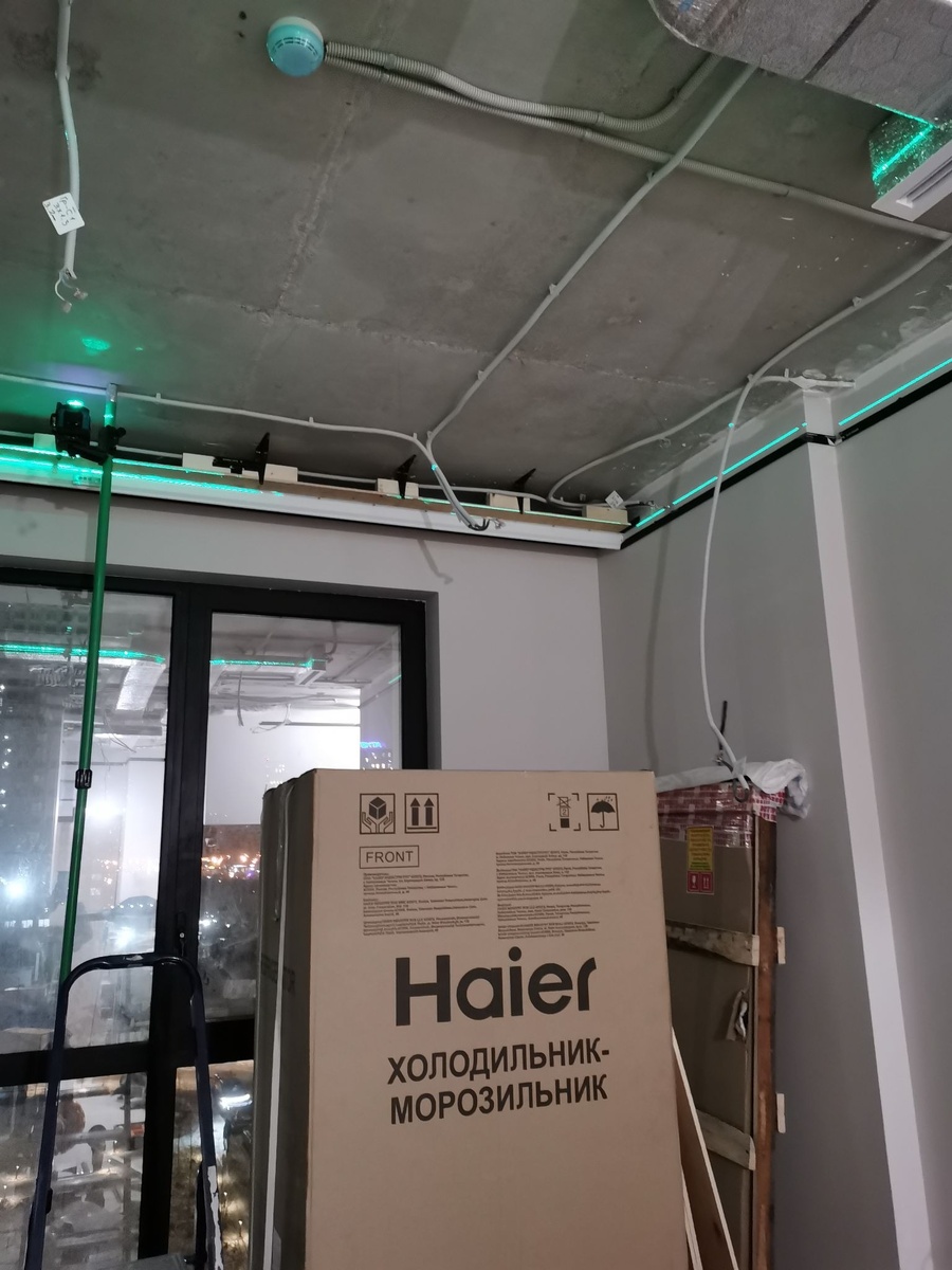 Монтаж парящего потолка в готовом ремонте — это стандартная практика, а не исключение. Большинство наших заказов именно такие. Реальные ограничения немногочисленны: потолочный плинтус придётся снять, мебель — отодвинуть, кабель под ленту — протянуть. Всё остальное остаётся нетронутым.