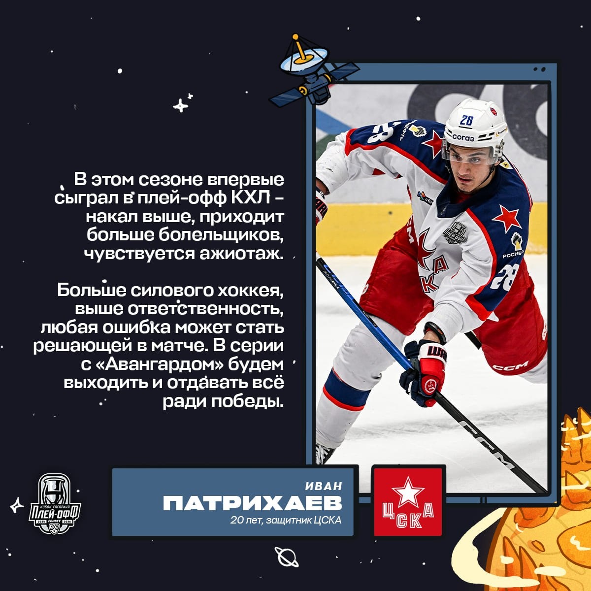 Защитник ЦСКА Иван Патрихаев 🐴 дебютировал в КХЛ в прошлом сезоне, а в нынешнем стал твёрдым игроком основы