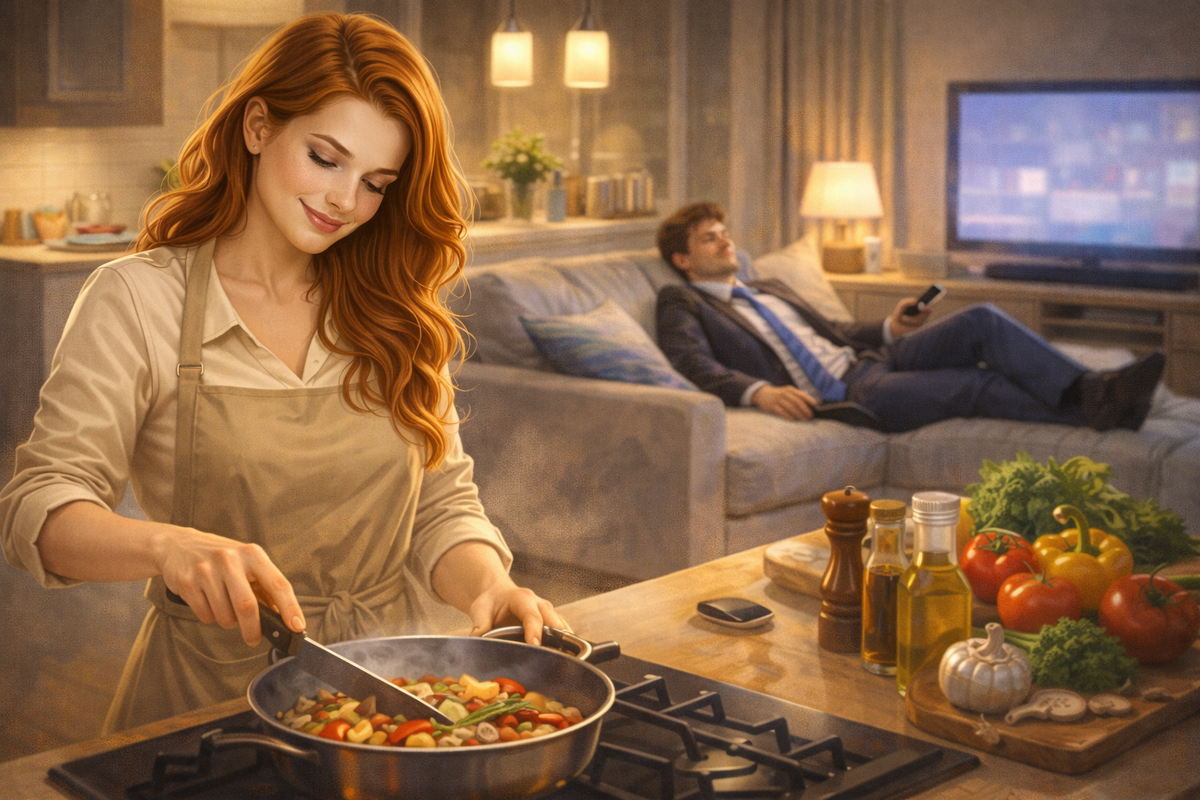 вечером — «ну ты же женщина» «Равноправие до кухни» И вот тут начинается внутренний конфликт. Потому что если оба работают —