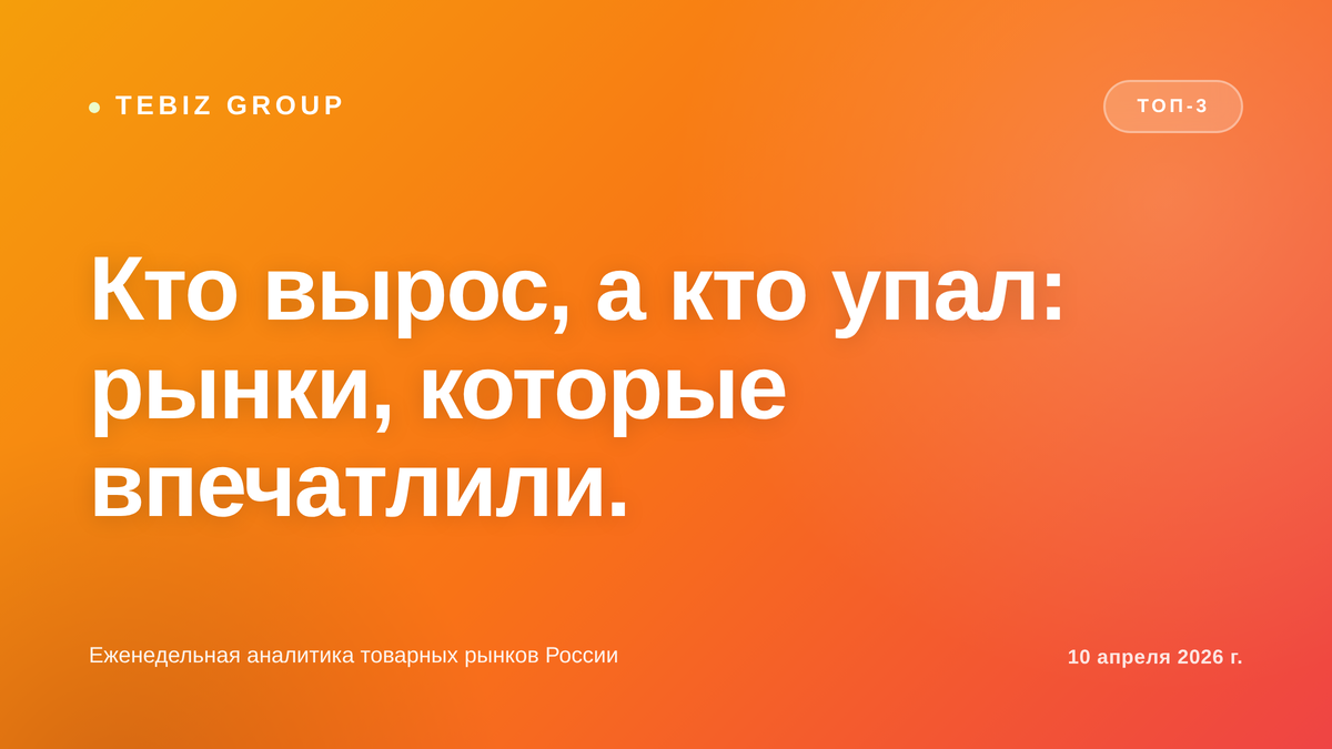 Кто вырос, а кто упал: рынки, которые впечатлили. Сегодня мы рассмотрим три рынка с противоположными тенденциями. 📖 Читать полный обзор с интерактивными графиками на Tebiz Group