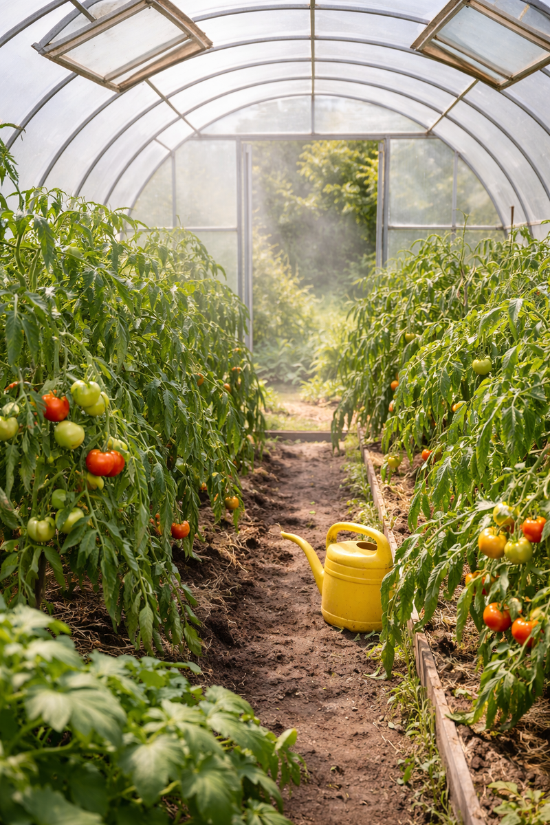 Снаружи солнце, внутри тоже светло, растения вроде бы под защитой, полив есть, уход есть, а выглядят посадки почему-то всё хуже. Листья вянут к середине дня, завязи осыпаются, воздух в теплице тяжёлый, влажный, неприятный. Человек заходит внутрь и сам чувствует, что там не просто тепло, а душно.
