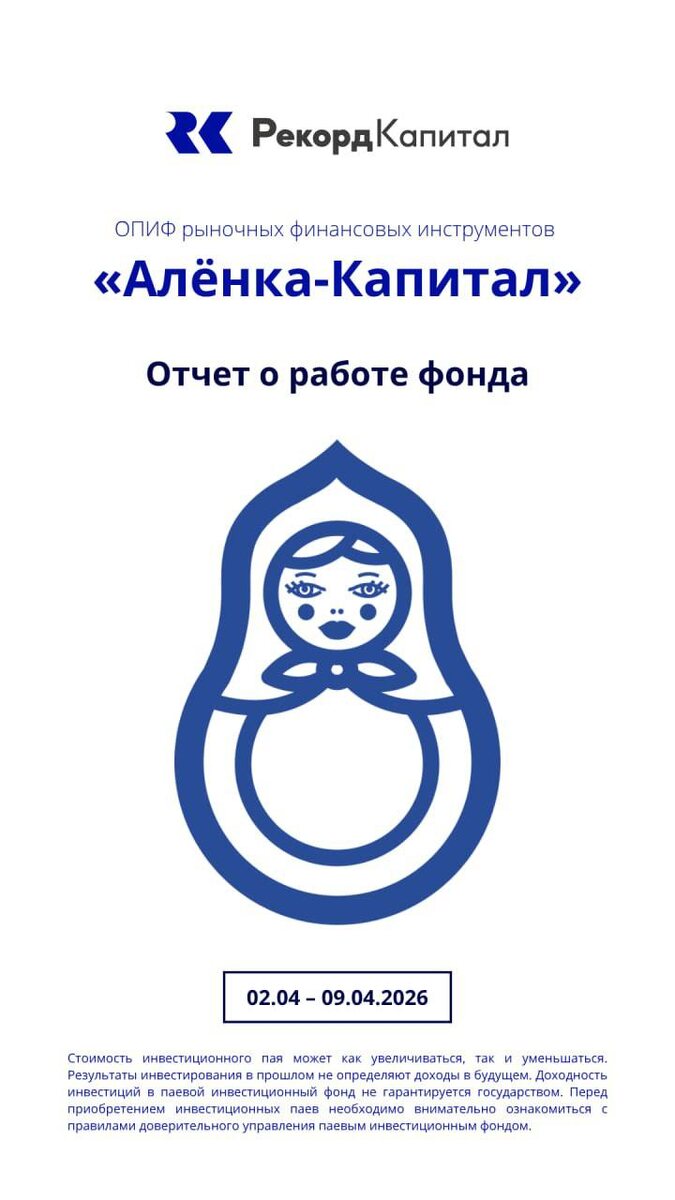 😀 Друзья, ловите традиционный обзор по фонду «Алёнка-Капитал» за неделю с комментариями управляющего - Марламова Элвиса 😀 Присоединиться к инвесторам фонда или увеличить свой портфель можно в любое время по ссылке 😀😀😀😀😀😀