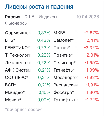 Всем привет! По итогам основной сессии 10 апреля индекс Мосбиржи потерял 0,3%. Вроде бы была попытка отрасти на позитивных новостях о Пасхальном перемирии, но все подпортили новости о обсуждаемой инициативе по дополнительным налогам. Власти обсуждают введение налога на сверхприбыль (windfall tax) за