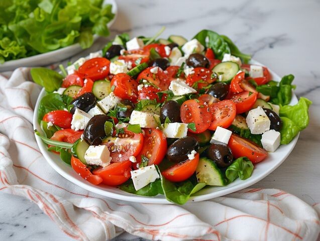 🥗🇬🇷 Самый летний салат — из свежих овощей, с оливками и сыром фета. Аппетитно, полезно, быстро! Ингредиенты: Помидоры — 3 шт. Огурцы — 2 шт. Болгарский перец — 1 шт. Красный лук — 0.5 шт. Маслины — горсть Сыр фета — 200 г Оливковое масло, лимонный сок, орегано, соль, перец. Приготовление: Овощи нарежьте крупными кусками. Лук нарежьте тонкими полукольцами. Сыр фета нарежьте кубиками или просто выложите сверху. Посолите, поперчите, посыпьте орегано. Заправьте оливковым маслом и лимонным соком. Важно: Не перемешивайте салат заранее, делайте это прямо перед подачей! 💬 Как часто готовите Греческий салат? https://t.me/dachstil