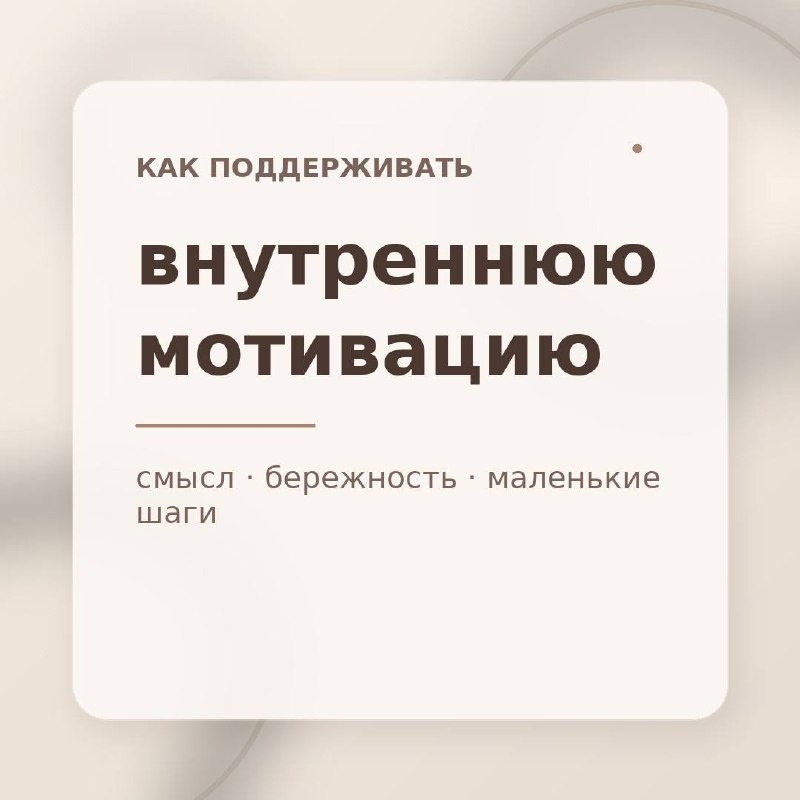 ? Внутренняя мотивация не живет на одном вдохновении. Она не появляется каждое утро по расписанию и не держится только на силе воли. На самом деле мотивация чаще всего держится на 3 вещах: смысле, бережности к себе и маленьких шагах. Что помогает не выгорать и не бросать на полпути: 1. Возвращаться к своему “зачем” Когда мы забываем, ради чего начали, любое действие становится тяжестью. Напоминать себе о смысле — это не пафос, это опора. 2. Не ждать идеального состояния Мотивация редко приходит до действия. Чаще она появляется уже в процессе. Иногда достаточно просто начать с 10 минут. 3. Замечать маленький прогресс Большие цели вдохновляют, но именно маленькие результаты удерживают нас в пути. Один шаг — это тоже движение. Одна выполненная задача — уже не ноль. 4. Не путать усталость с ленью Иногда нам не нужна жесткость. Иногда нам нужен отдых, тишина, пауза и восстановление. Из пустого ресурса трудно требовать огня. 5. Поддерживать себя, а не давить на себя Внутренняя мотивация ра