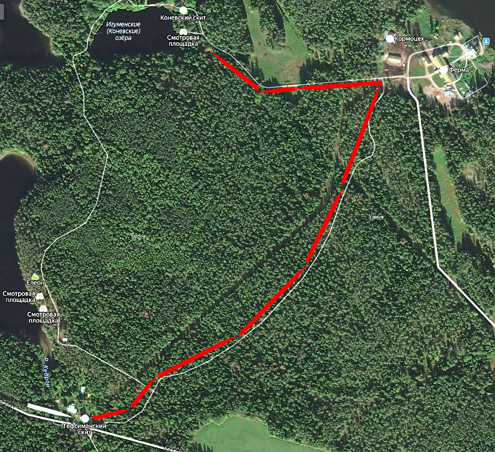 Продолжается наша экскурсия по западной части острова Валаам. В предыдущей статье мы расстались с Вами у Гефсиманского скита, сегодня от него отправимся к Коневским озёрам, где находится Коневский скит. Гефсиманский скит – от него наш маршрут будет пролегать на северо-восток к монастырской ферме. Гефсиманский скит расположен на Главной Монастырской дороге, чтобы попасть на ферму, нужно свернуть с неё налево, на лесную дорогу. Лесная чаща справа от дороги. Впрочем, не менее густые заросли и на левой стороне. На обочине дороги расположен интересный «арт-объект» – упавшее дерево с вырезанными словами на стволе: «Один человек оставляет в лесу след, сотня – тропу, тысяча – пустыню». Рядом с дорогой можно увидеть живописные «грибные композиции». Лесная дорога в 20 минутах хода до фермы. Перед фермой лес становится гораздо реже. Монастырская ферма – промежуточный «остановочный» пункт на пути к Коневским озёрам. Экскурсии на ферму не было, мы просто посмотрели на неё издалека. Зато здесь можно