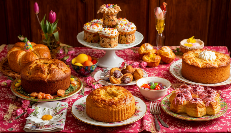- Пасхальный стол — символ изобилия. Поскольку строгий пост уже окончен, на столе должны быть все самые лучшие блюда: куличи, мясо, творожные пасхи и другие сладости. Чем богаче угощение, тем, по поверью, сытнее будет весь год.