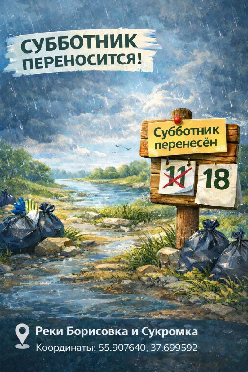 ➡️Планам навести чистоту на берегах Сукромки и Борисовки в эту субботу помешал внезапный снег и холод. Экологическую акцию, запланированную на 11 апреля, официально перенесли. 💬 Как сообщил директор управления экологии Алексей Королев, проводить уборку в таких условиях некомфортно и неэффективно. Но есть и хорошие новости: синоптики обещают тепло к следующему уик-энду. 📅 Новая дата Субботника: 18 апреля ⏰ Время: 10:00 📍 Место сбора: берега рек Борисовка и Сукромка (координаты: 55.907640, 37.699592) ℹ️ Цель остается прежней — очистить наши реки в рамках проекта «Вода России». Так что не убирайте инвентарь далеко, просто подождем, пока растает этот «апрельский сюрприз». Возрастное ограничение: 12+ ❤️ @mytischi_live | прислать новость 📲 Мы в MAX