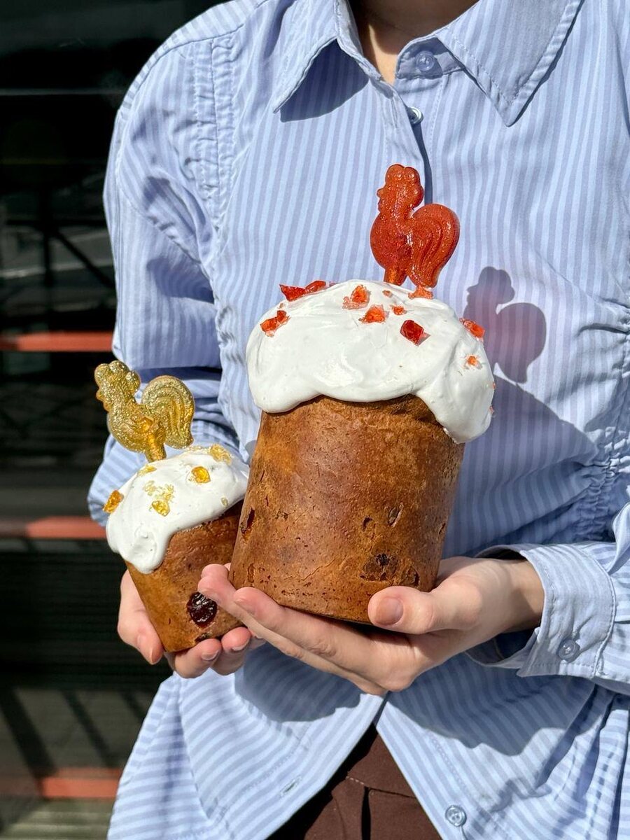 На Московском рынке вовсю готовятся к Пасхе. У резидентов запускается пасхальное меню, территория рынка преображается к празднику Ловите список, где и какие пасхальные вкусняшки можно найти. ➡️Коллаборация Московского рынка и шеф-пекаря Камилы Абдуллиной Первая коллаборация — с шеф-пекарем и «главной по булкам» в городе Камилой Абдуллиной. Камила — шеф-пекарь Begin group, за год она поставила хлеб и выпечку в 15 проектах в России и за рубежом. К Пасхе Камила приготовила воздушные куличи с изюмом: один с меренгой и ванильным кремом за 1190 рублей, а второй — с глазурью и петушком за 790 рублей. Куличи от Камилы уже можно купить на центральном корнере на 1 этаже лабаза Московского рынка. ➡️Смородина С 10 по 13 апреля в лавке «Смородины» на Московском будут продавать куличи и творожные пасхи. Куличиможно купить в двух размерах: большой весом 650 гр за 2100 рублей и маленький весом 420 гр за 1900 рублей. Тесто длительного холодного брожения (не опара) на молоке, желтках, сливочном