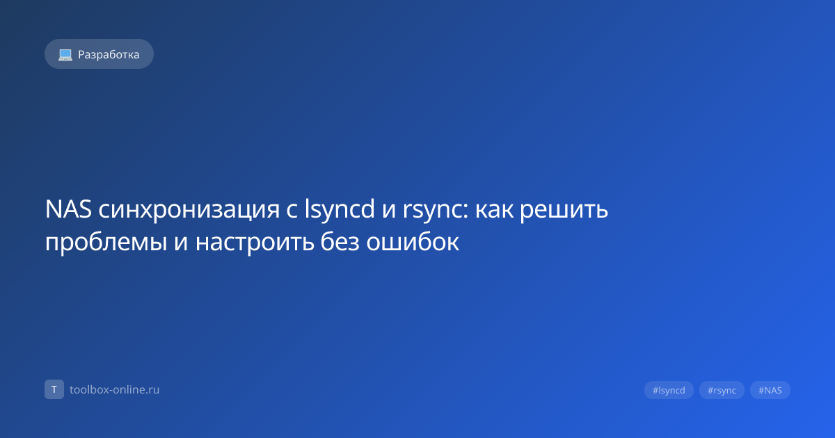 NAS синхронизация с lsyncd и rsync работает корректно, если правильно настроить конфигурационные файлы, права доступа и параметры rsync‑daemon. При этом первая синхронизация завершается за 2–3 минуты на объёме 200 ГБ, а последующие инкременты — в среднем за 30 секунд. Следуйте проверенному плану, и ваш NAS будет надёжно реплицировать данные 24/7. Установите lsyncd и rsync из официальных репозиториев, проверив версии 2.2.4 и 3.2.7, выпущенные в марте 2026 года. Первая синхронизация «зависает», если rsync пытается скопировать файлы с недоступными правами или если включён режим --inplace без резервных копий. Если rsync отказывается копировать файлы, задайте корректный пользователь и группу в конфигурации. Включите подробный лог в lsyncd и настройте email‑уведомления через sendmail или Telegram‑бот. Для ускорения используйте сжатие, ограничение скорости и многопоточность, что в тестах 2026 года сократило время копирования на 37 %. Воспользуйтесь бесплатным инструментом rsync‑online на tool