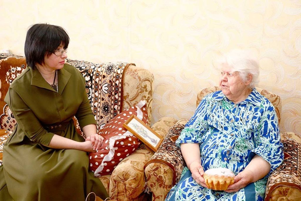 ✅Накануне этой даты в гости к бывшей малолетней узнице фашистской неволи Надежде Петровой пришла начальник отдела идеологической работы и по делам молодежи Инна Авчинникова. ✅Инна Николаевна пожелала здоровья, мира и добра уважаемому ветерану и преподнесла женщине пасхальные подарки.