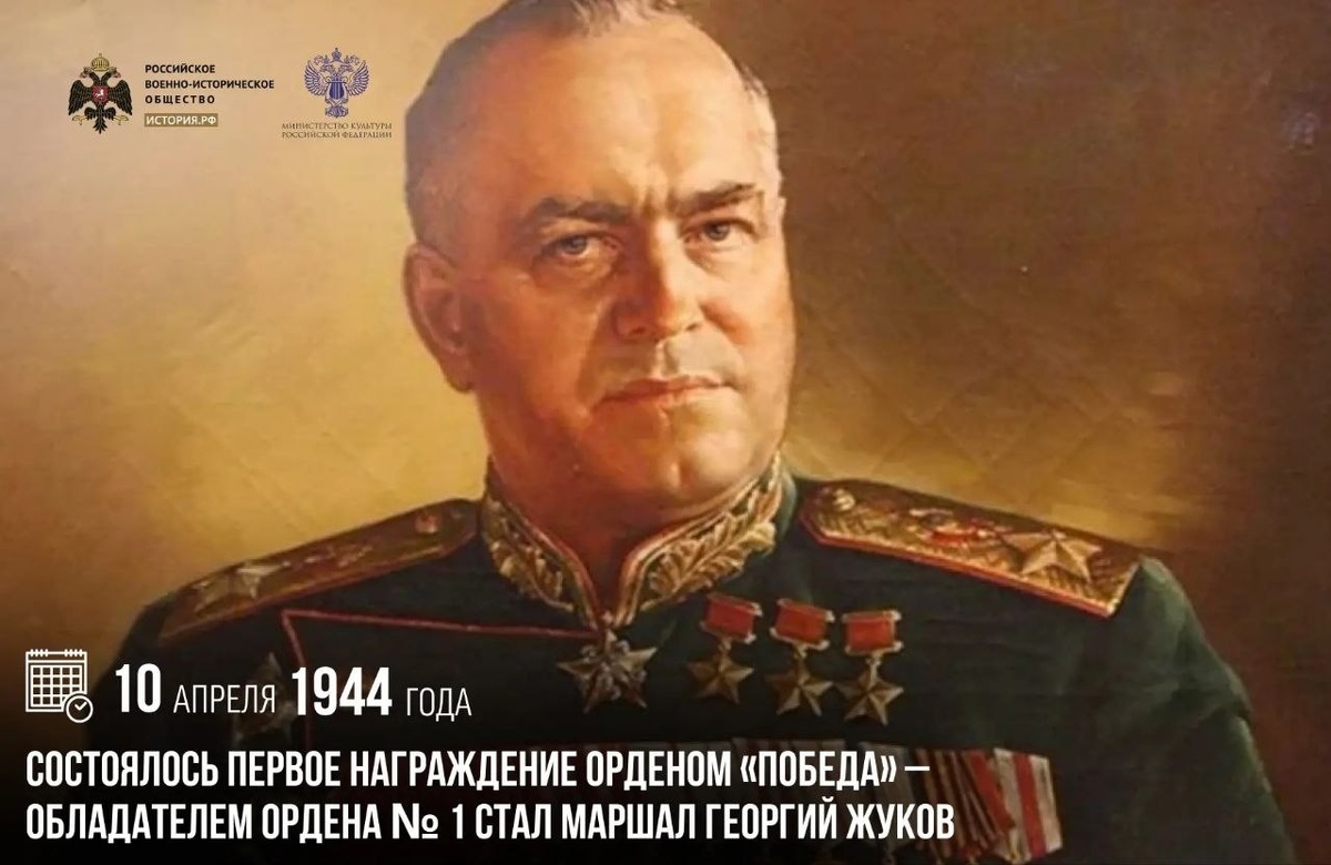 10 апреля 1944 года состоялось первое награждение орденом «Победа» — обладателем ордена № 1 стал Маршал Георгий Жуков