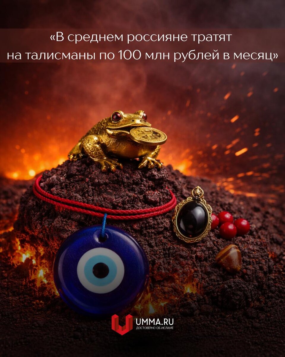 «Россияне массово скупают талисманы от сглаза. Только за два месяца 2026 года спрос взлетел на 120%, защитные брелоки покупали на 237% чаще. В среднем россияне тратят на талисманы по 100 млн рублей в месяц.» ©️bankrollo Пытаясь спастись от порчи, люди впадают в тяжкий грех. Упование на амулеты, красные нити и обереги — это очевидный ширк (многобожие). Перекладывая надежду на кусок пластика, человек теряет защиту Всевышнего и разрушает свою веру. Страх рождается от невежества. Истинная защита строится на знаниях. Книга Шамиля Аляутдинова «Потусторонние миры» дает ясные ответы через призму Корана и Сунны: ▪️ Реальность колдовства, сглаза и вещих снов. ▪️ Природа джиннов: могут ли они навредить. ▪️ Достоверные молитвы-заклинания (ду‘а) для настоящей духовной защиты. Замените суеверия достоверными знаниями. 📘 Читать: https://clck.ru/3T2MMb ⭐️ Читать в приложении «Триллионер»: 📥 IOS: https://umma.ru/trillioner-ios 📥 Android: https://umma.ru/trillioner-android 🇷🇺 Наш канал в Max