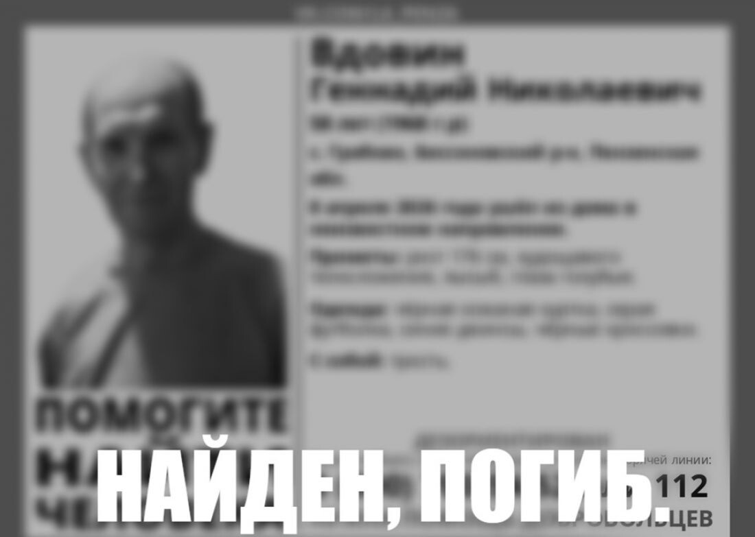 10 апреля стало известно о завершении поисков Геннадия Вдовина. В группе поискового отряда «Лиза Алерт» Пензенской области появилось сообщений о том, что мужчина найден мертвым. «Найден, погиб. Приносим соболезнования родным и близким», - говорится в комментариях под ориентировкой на пропавшего. При каких обстоятельствах и где был найден житель с. Грабово, не сообщается. 8 апреля он ушел из дома в неизвестном направлении. Его искали близкие, полиция, добровольцы. Сообщалось, что мужчина дезориентирован. Ранее сообщалось, что в Пензе на улице Красной насмерть сбили женщину. За рулем иномарки находился 18-летний молодой человек. Личность сбитой женщины на данный момент не установлена.