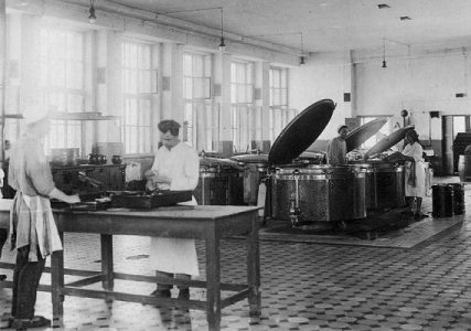 Идеологи социализма настойчиво рекомендовали гражданам оставить в прошлом тесные коммунальные кухни и готовку на примусах. Первая фабрика-кухня появилась в 1925 году в Иваново-Вознесенске (сегодня — Иваново). Здание в стиле конструктивизма стало эталоном для строительства аналогичных предприятий в Москве, Ленинграде, Нижнем Новгороде и Днепрострое.