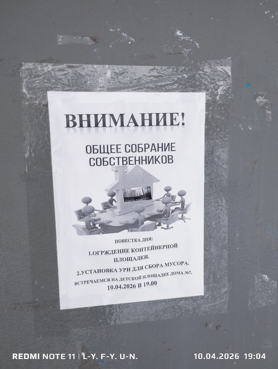 Присутствовало на собрании всего человек шесть, никому похоже ничего не надо , вместо того чтоб решать проблему с чистотой двора будем "хрюкать вместе?" Урны жадины не хотят устанавливать похоже, какая то местная аборигенка заявила что если будут урны то люди будут нести мусор не на помойку а складывать в урны. Люди ли это ? Сомневаюсь... 🤔 По поводу решетки я так и не понял что за заграждение они хотят сделать! 🤔 Ведь заграждение уже есть! Только оно не используется в следствии допущения проектной ошибки в конструкции не учитывая человеческий фактор. ☝️