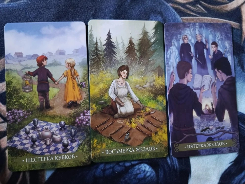 5 Жезлов именно в этой колоде и в этой выкладке говорит об обучающем процессе. Вот когда Вы приметите того кто незримо Вас ведет, Вам будет легче перенять некоторые моменты у него. Человек рядом с Вами может многому Вас научить и помочь преодолеть трудности на начальном этапе. Но даже если Вы не наблюдаете такого человека рядом, он все-же есть и Вы неосознанно обучаетесь у него. Это может быть коллега, который может сказать мимолетную фразу, но именно эта фраза оказывается ключевой в каком-то трудно разрешаемом вопросе, ( это как надостающий пазлик) и все сразу становиться на свои места. Это и обучение и подсказка и помощь.