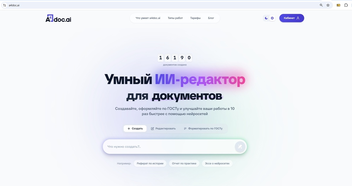 Если проект нужно «на вчера», а в голове каша из ФГОС, ГОСТ и требований учителя, можно не геройствовать в одиночку. Ниже — сервисы, которые реально помогают дотянуть школьный проект до нормальной оценки. A4DOC.AI помогает оформить текст проекта по ГОСТ: шрифт, поля, абзацы, нумерация, заголовки, список литературы и даже приложения — всё приводится к единому стандарту автоматически. Сервис понимает структуру учебных работ и подходит для проектов 7–11 классов, отчётов и рефератов; достаточно загрузить документ или вставить текст — на выходе получаете готовый файл Word, который можно не стыдно сдавать. 👉A4DOC.AI WorkProekt помогает понять, как вообще должен выглядеть школьный проект: структура, оформление, примеры разделов. Удобно, если учитель дал минимум объяснений, а хочется свериться с подробными требованиями и образцами. 👉 WorkProekt — всё про школьные проекты GOSTDiploma автоматически расставляет отступы, шрифт, интервалы и нумерацию страниц по стандартному ГОСТ‑шаблону. Больше