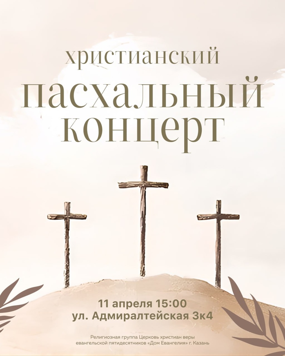 В Казани, в церкви «Дом Евангелия» пройдет пасхальный концерт, на который приглашают всех желающих. 11 марта 15:00 Казань, ул. Адмиралтейская, 3к4 Здесь же пройдет пасхальное богослужение с причастием 12 марта 11:00 Казань, ул. Адмиралтейская, 3к4 Церковь «Филадельфия» г. Ижевска приглашает на богослужение, посвященное Воскресению Господа Иисуса Христа 12 апреля в 10:00 Ижевск, ул. Труда, 19 В церкви «Назарет» г. Новосибирска тоже состоится праздничное пасхальное богослужение 12 апреля в 11:00 Новосибирск, ул. Оловозаводская, 1 В церкви «Благодать» г. Калуги подготовили пасхальную постановку «Цена жизни» и приглашают всех желающих. 18 апреля в 12:00 и 14:00 Калуга, ул. Болдина, 20 (на улице, возле здания церкви) Омская церковь «Жатва» приглашает на пасхальную постановку «День, который изменил всё». 18 апреля в 14:00 и 18:00 Омск, ул. Энергетиков, 6А #РЦХВЕ #Пасха #СветлаяПасха #ХристовоВоскресение