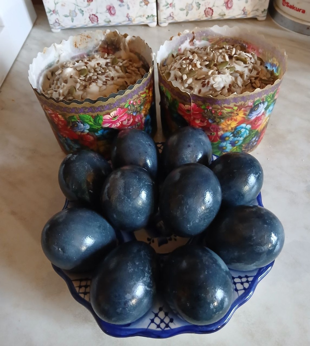 Рапортую, к Пасхе готова! Конечно, яйца получились угрюмые, скорее на сливу похожие, решила попробовать покрасить каркаде. Больше так делать не буду. А с куличами все срослось. Только в следующий раз в глазурь какао добавлю, цвета мне не хватило. Рецепт подсмотрела в КЕТО диете. Тут все по уму, ингредиенты «поженились» ещё в стадии замеса. Сразу оговорюсь, я добавила цедру одного лимона и курагу. Во- первых не люблю апельсиновые нотки с лимоном мешать, а во-вторых, сушеных ягод не было. Итак, ловите. Ингредиенты Глазурь Рецепт