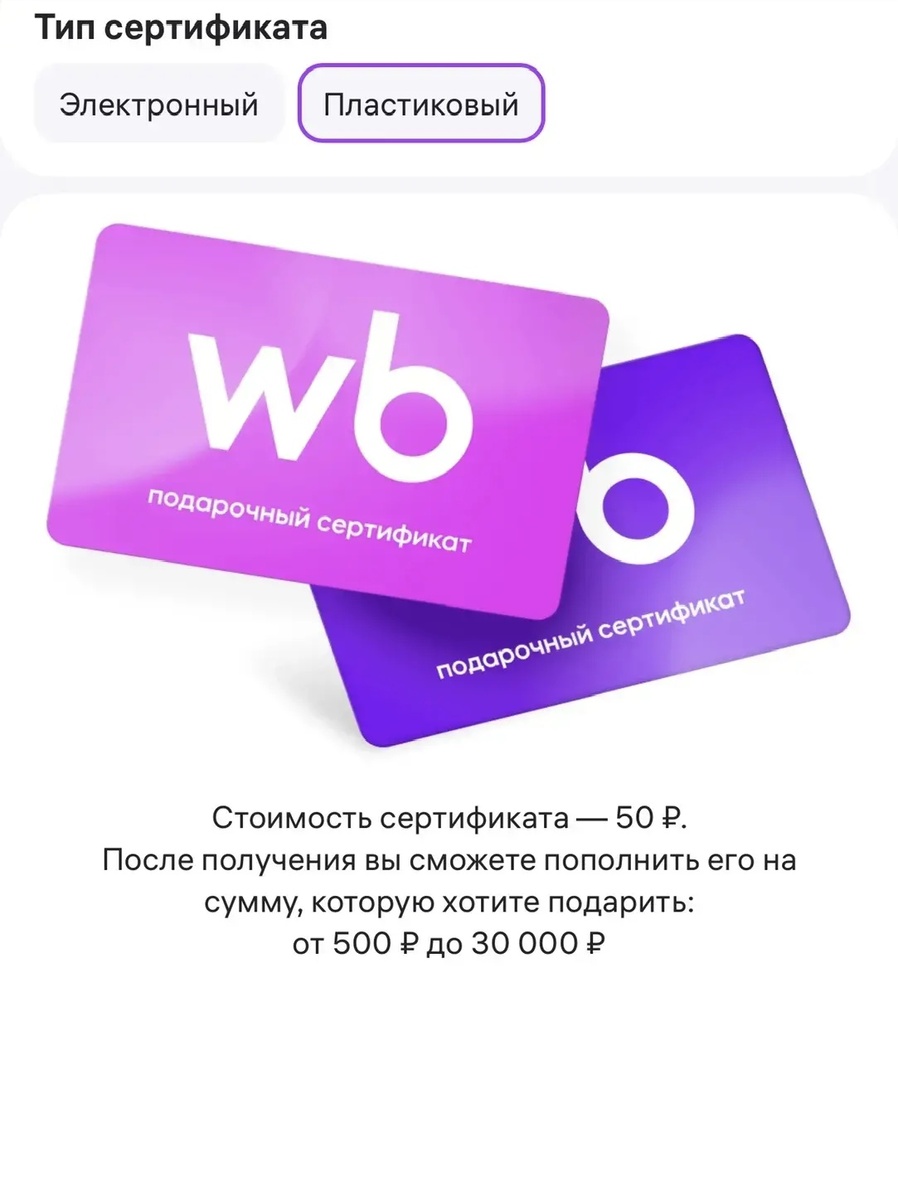 WB запустил в продажу физические пластиковые подарочные сертификаты! 💳