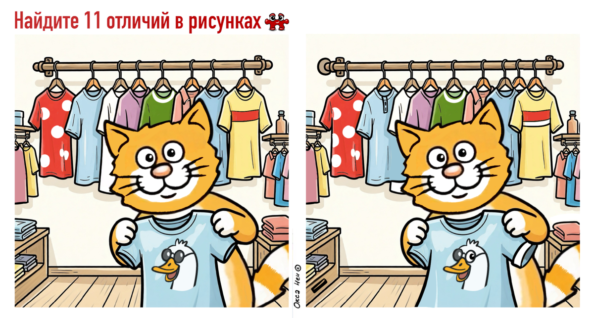 Всем привет! А у нас сегодня пятничный шоппинг с рыжим котиком. Как вам футболочка - брать? Отличия сегодня средней сложности. Всем хорошего вечера и выходных! Горизонтальный тест: Вертикальный тест: Спасибо, что благодарите автора кнопочкой «Поддержать». Дзен предлагает авторам переходить на платные подписки, но мой канал всегда будет бесплатным, а поддержка по желанию. Спасибо, что мотивируете нас с Кешей :)