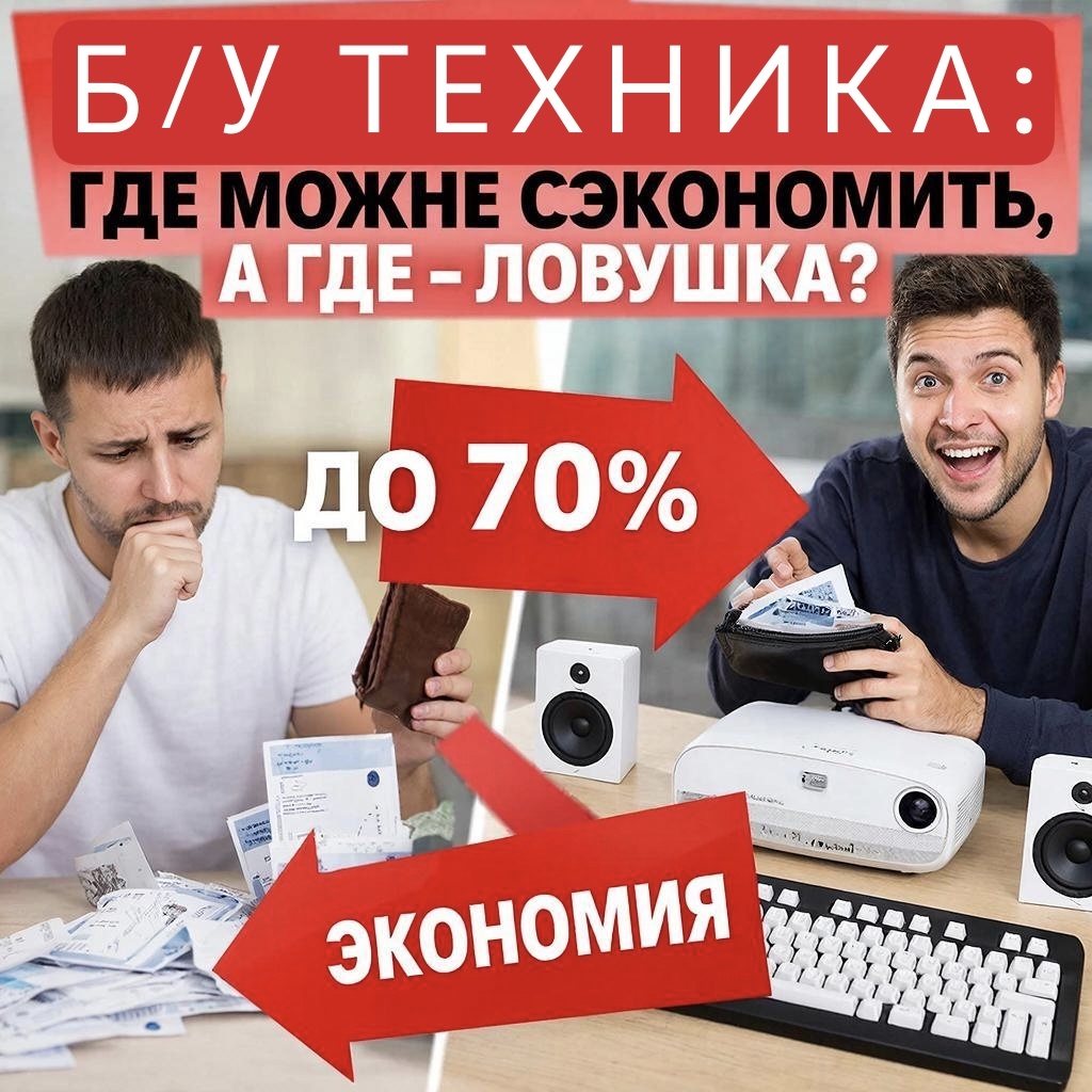 Хотите ноутбук за 30 000 руб. вместо 80 000 руб.? Или проектор для домашнего кинотеатра почти даром? Покупка б/у техники может сэкономить кучу денег — но только если знать, что можно брать с рук, а что — гарантированно принесёт проблемы. В этой статье разберём: