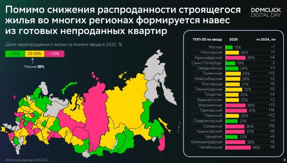 🪖Доля нераспроданных квартир к вводу дома выросла почти вдвое — Домклик