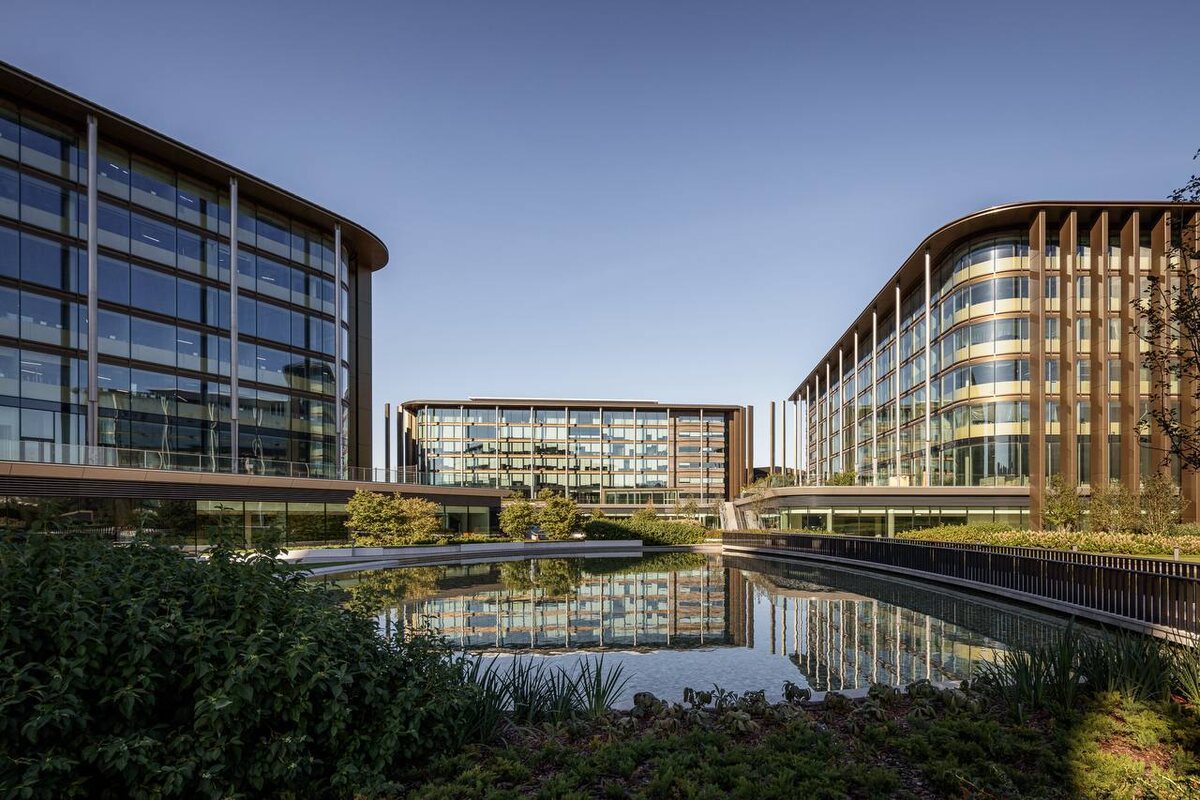 ” Проект, в котором архитектурная реализация тесно связана с инженерными решениями, градостроительной логикой и разнообразными сценариями эксплуатации. Архитектурную концепцию разработало британское бюро Scott Brownrigg, а команда ABD architects выступила в роли интегратора проекта — генерального проектировщика, взявшего на себя переработку конструктивных решений, фасадных систем, инженерии, решений генерального плана и этапности строительства. 🟢Техническое задание включало сразу несколько целей: создать офисный парк класса А с гибкой планировочной структурой, встроить комплекс в сложный природный рельеф долины реки Сетунь, обеспечить высокие экологические стандарты и заложить возможность трансформации объекта под меняющиеся запросы арендаторов. 🟢Шесть офисных корпусов класса А объединены общим стилобатом, который задаёт уровень внутреннего контура и связывает наземные и подземные функции. Вдоль стилобата размещена торговая галерея, формирующая активный городской фронт и обеспечив