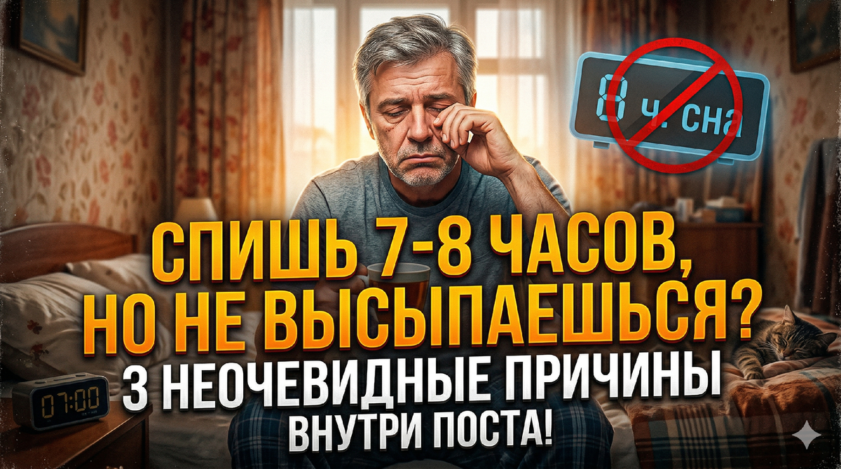 Доброго времени, мои дорогие. Многие после 50 начинают замечать странное ощущение: сон вроде есть, а отдыха - нет. Проснулись, посмотрели на часы - всё как положено. Но внутри - будто не спали. И это не разовая история. Такое состояние повторяется снова и снова. День проходит в вялости, к вечеру накапливается усталость, а ночью всё повторяется. Самое неприятное - появляется ощущение, что это уже норма. «Возраст» - и точка. Но на самом деле это не совсем так. С возрастом организм действительно начинает работать иначе. Это касается и сна. Он становится более «лёгким», чувствительным. Мозг уже не так быстро уходит в глубокие фазы, где происходит основное восстановление. Но ключевой момент в другом: после 50 сон сильнее зависит от внутренних процессов. То, что раньше не влияло, теперь начинает играть заметную роль. И именно поэтому человек может спать долго, но не чувствовать отдыха. Многие думают: если не просыпались ночью - значит спали хорошо. Но часто после 50 сон становится более «тон