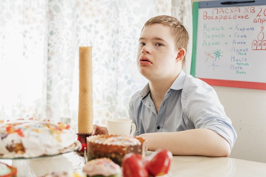 Повседневные заботы в эти дни тоже приобретают особый смысл. Ребята приводят в порядок и украшают комнаты, готовят подарки и небольшие угощения для друзей, вместе с сопровождающими учатся готовить куличи. Особенно этот процесс увлекает Наташу, Тошу и Настю. Они аккуратно замешивают тесто, следят за процессом, украшают готовую выпечку, красят яйца. Это не просто приготовление — это опыт самостоятельности, вовлеченности и радости от результата, который можно разделить с другими. Позже приготовленные угощения освящают во время службы в домовом храме, и этот момент становится для ребят важным и очень трогательным.
